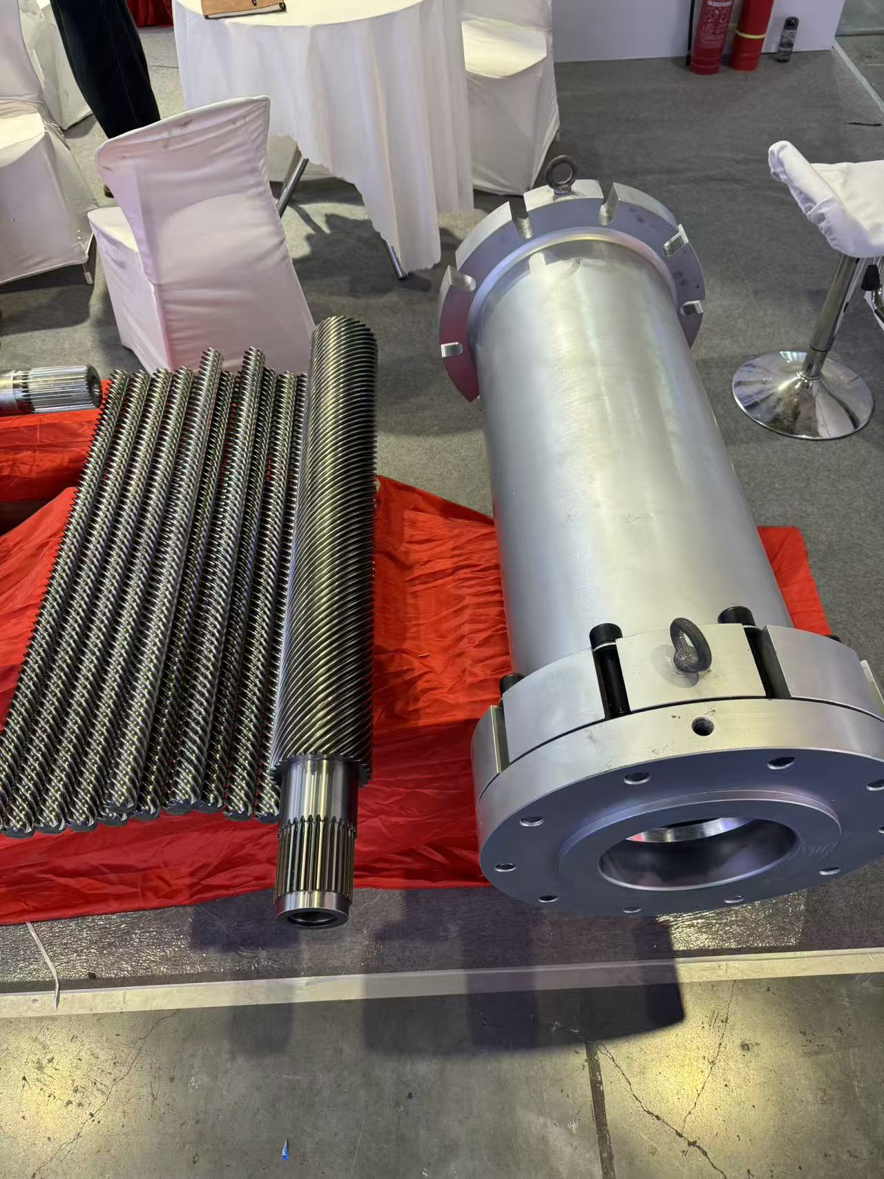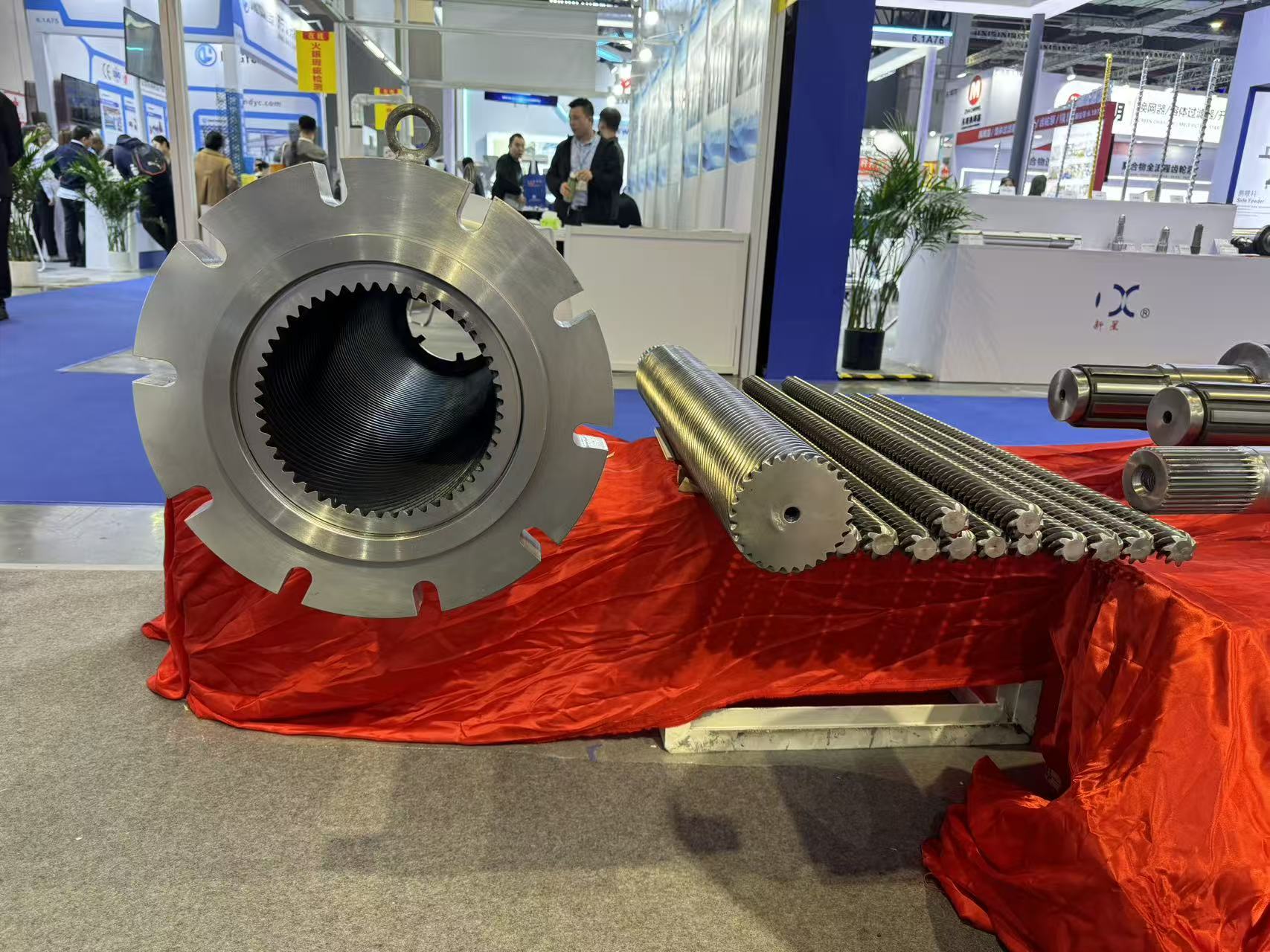 I componenti degli estrusori planetari dell'azienda sono stati il punto forte della mostra. Il design esclusivo della struttura dell'ingranaggio interno e dell'anello dentato esterno consente il taglio e la miscelazione ad alta intensità di materiali polimerici, con conseguente riscaldamento più uniforme e plastificazione significativamente migliorata.